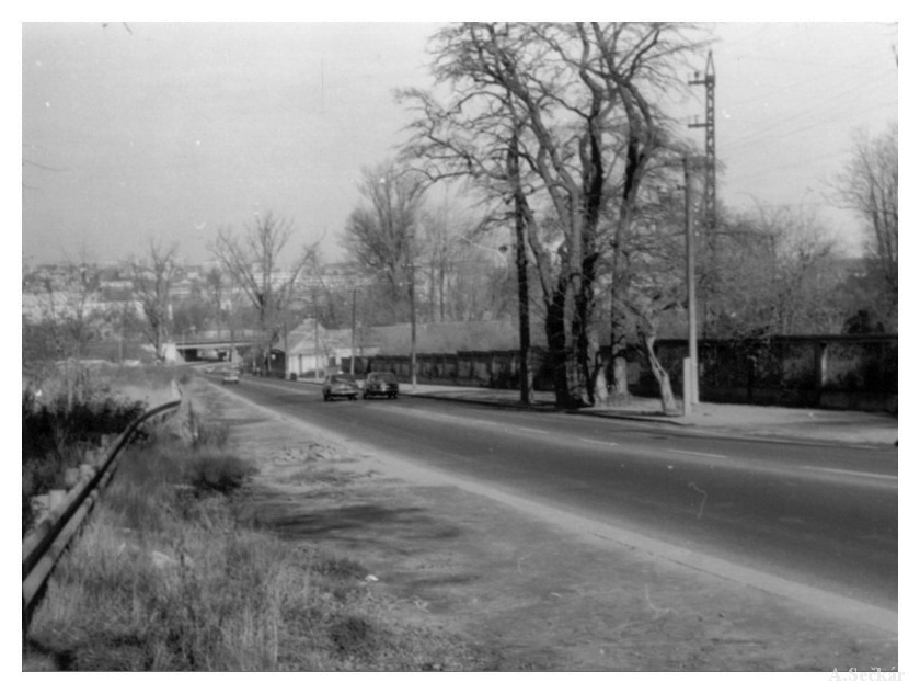 Fotografie cca ze 70. let. Objekt restaurace je na tomto snímku vidět vpravo uprostřed, vzadu železniční most na trati 210 a v pozadí zástavba okolo Kačerova.
