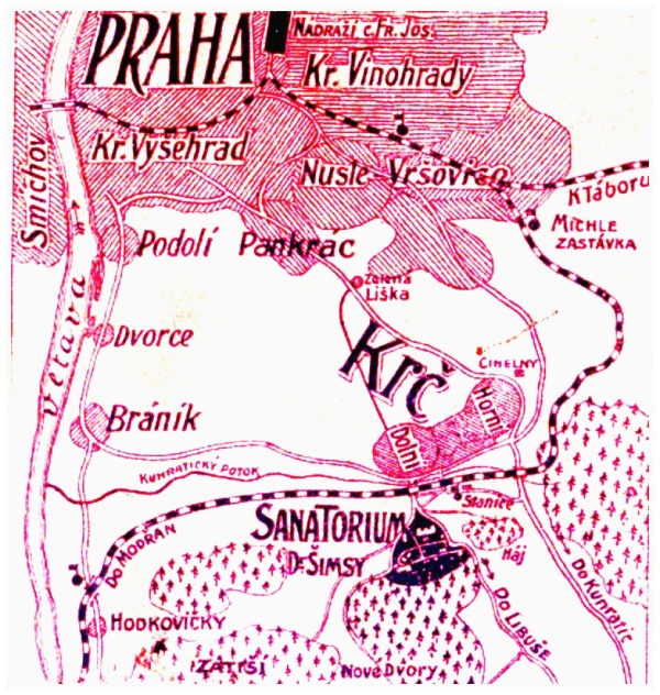 S vyznačením Sanatoria dr. Šimsy
